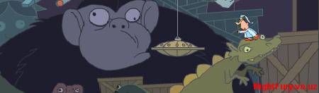 Ну вот. Лунатик пришёл в музей динозавров. Чтоб с ним ничего не случилось, нажимайте на объекты.